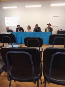 Na Mesa estiveram o apresentador do livro, o autor do livro (também representante da Cooperativa Pinacoteca e Associação Raia Gerações), a Presidente da União de Freguesias de Póvoa de Rio de Moinhos e Caféde, Lucinda Martins e o orador da palestra.