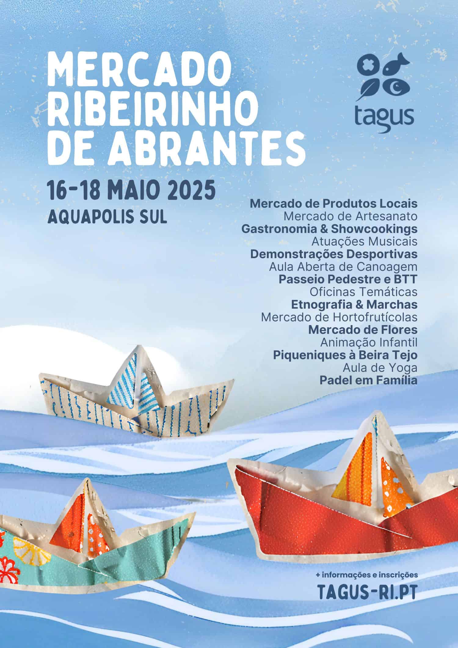 Mercado Ribeirinho de Abrantes Atividades de valorização do Tejo convidam a disfrutar as margens de Abrantes em mercado ribeirinho A TAGUS – Associação para o Desenvolvimento Integrado do Ribatejo Interior vai realizar nos dias 16 a 18 de maio, o Mercado Ribeirinho de Abrantes, no Aquapolis. A iniciativa, que é um convite a usufruir do rio Tejo, inclui um conjunto de atividades para toda a família, nomeadamente, fado, etnografia, gastronomia,…