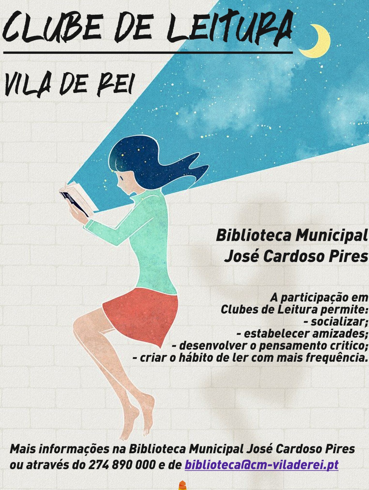 A Biblioteca Municipal José Cardoso Pires, em Vila de Rei, encontra-se a promover a constituição de um Clube de Leitura, a ter lugar nas instalações da Biblioteca. O Clube de Leitura será constituído por um grupo de pessoas que se poderão juntar regularmente para falar de livros, permitindo aos leitores conversarem sobre as suas experiências de leitura, ideias e opiniões. A participação em Clubes de Leitura permite a socialização, o…