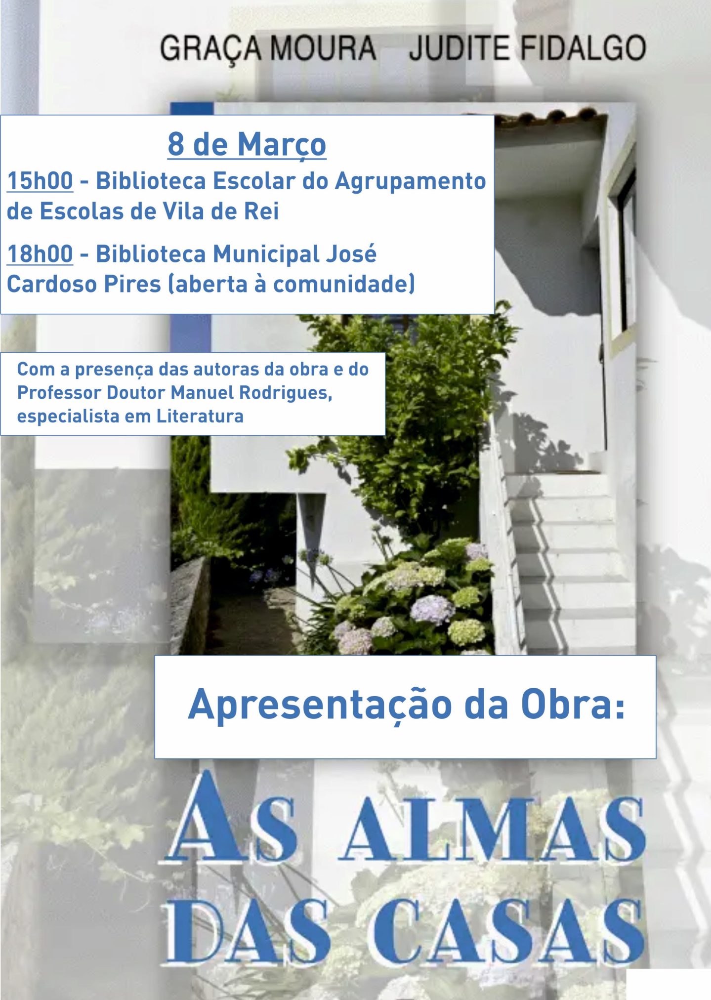 Vila de Rei vai receber, no próximo dia 8 de março, duas sessões de apresentação da obra ‘As Almas das Casas’, de Graça Moura e Judite Fidalgo, numa iniciativa organizada pela Rede de Bibliotecas de Vila de Rei. A primeira sessão vai decorrer nas instalações da Biblioteca Escolar do Agrupamento de Escolas de Vila de Rei, pelas 15h00, destinada aos alunos Vilarregenses. A segunda sessão será aberta a toda a…