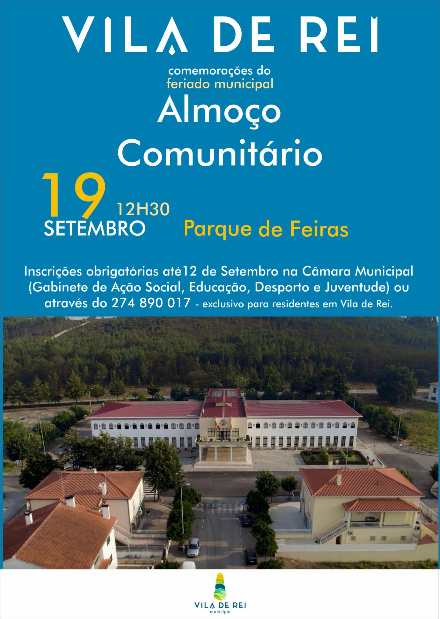 Feriado Municipal de Vila de Rei: Município organiza Almoço Comunitário a 19 de setembro. O Município de Vila de Rei comemora, no próximo dia 19 de setembro, o seu Feriado Municipal, que marca os 740 anos da atribuição do Foral por D. Dinis. À semelhança dos anos anteriores, será novamente realizado o Almoço Comunitário, destinado, gratuitamente, a todos os habitantes do Concelho de Vila de Rei. O mesmo terá lugar…