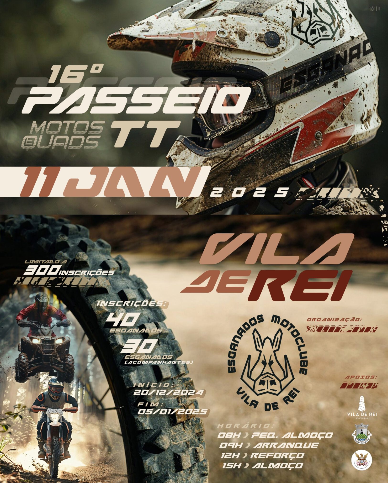 As inscrições para o 16º Passeio TT de Vila de Rei para motos e quads, que se realiza a 11 de janeiro de 2025, já se encontram abertas. A iniciativa é organizada pela Associação Desportiva, Recreativa e Cultural “Esganados TT – Motoclub Vila de Rei”, com o apoio da Autarquia Vilarregense. As inscrições são limitadas a 300 pessoas, até ao dia 5 de janeiro. Todos os interessados podem realizar a…