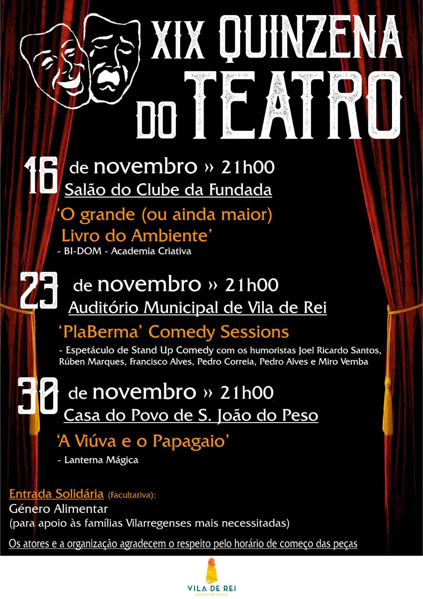 XIX Quinzena de Teatro Solidário de Vila de Rei com início em Fundada e a16 de novembro A Quinzena do Teatro Solidário de Vila de Rei vai regressar com todas as emoções das artes teatrais ao Concelho Vilarregense, nas noites de 16, 23 e 30 de novembro, naquela que é a décima nona edição do evento. A primeira sessão vai ocorrer no Salão do Clube da Fundada, pelas 21h00 de…